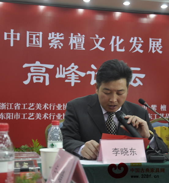 旭東紅木董事長(zhǎng)、東陽(yáng)市紫檀博物館館長(zhǎng)李曉東致歡迎詞