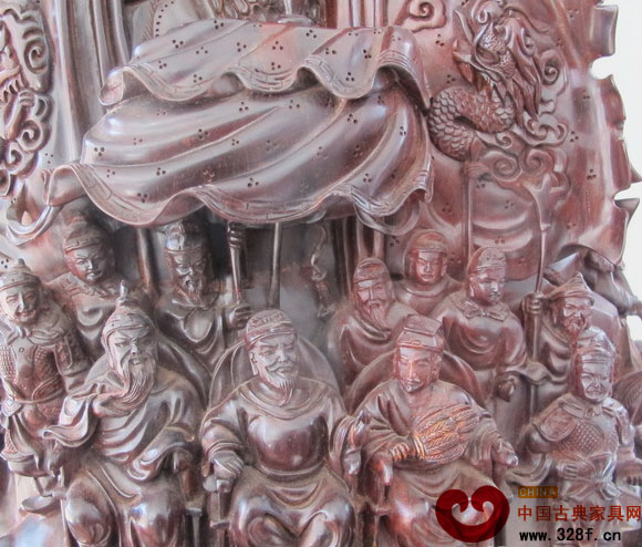 在麒麟鎮(zhèn)鼎典紅木雕刻企業(yè)的展示廳內(nèi),西館陳列著大型紅木家具,其中不乏用紫檀、金絲楠、黃花梨等昂貴木材制成?,F(xiàn)場還陳列了長達2余米的大板根雕,雕出了戰(zhàn)國時期的風(fēng)云場面,上百個人物栩栩如生,工藝精美;東館陳列著一件件紅木工藝品,有佛像、大象、山鷹、猴、筆筒、帆船等各種形態(tài),雕刻精細,充滿創(chuàng)意。