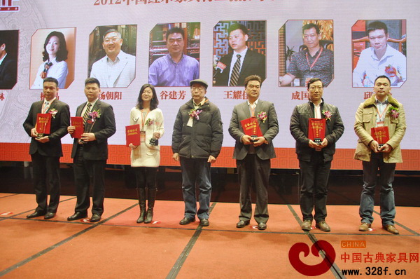 深發(fā)紅木總經(jīng)理謝國偉(右一)斬獲“2012中國紅木家具行業(yè)杰出職業(yè)經(jīng)理人”