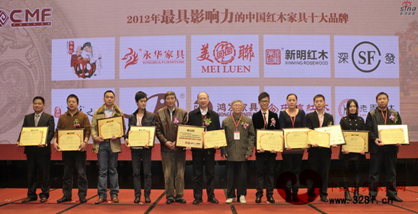 中信紅木(左一)獲“2012年最具影響力中國紅木家具十大品牌”大獎