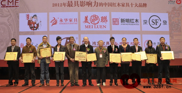 明堂紅木榮獲“2012最受歡迎的中國紅木家具十大品牌”