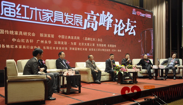 明堂紅木董事長(圖右三)出席“第三屆紅木家具發(fā)展高峰論壇”