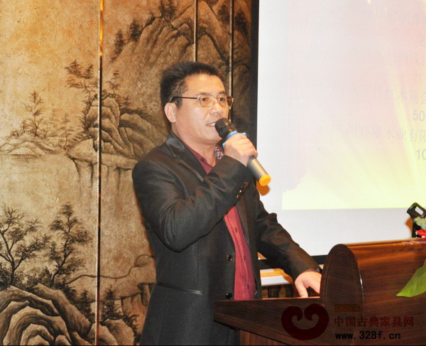 中山東陽紅木商會(huì)會(huì)長、長豐家具董事長陳新豐發(fā)表致辭