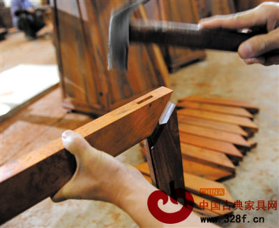楊建國將消費者“一見鐘情”歸功于舊雨來在紅木家具制作中的嚴(yán)格要求。他說,欣賞古典家具的價值標(biāo)準(zhǔn),除“材美工巧”之外,真正組成家具靈魂的是榫卯結(jié)構(gòu)。紅木家具工藝合理精巧,榫卯的制作是最重要的方面。