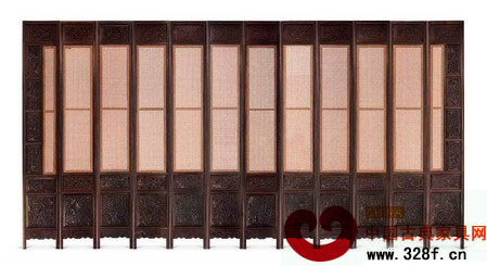 隔扇,又稱格門,用于室內(nèi)空間分割,視開間大小,安裝四扇、六扇,以至十扇、十二扇多寡不等。此次所呈“清乾隆紅木山水人物紋隔扇十二件”上,蓮子、游魚生動(dòng)活潑,栩栩如生寓意“連年有余”;另有仙鶴、蝠壽、仙山人物、羽人駕虬龍載仙人升仙等主題。雕刻精湛,刀法婉轉(zhuǎn)流暢,題材豐富、構(gòu)圖飽滿、造型生動(dòng)、層次分明。保存完好,高度適中,亦適于現(xiàn)代家居陳列,處處流露著制作者的匠心,亦是體現(xiàn)著當(dāng)年定制者的理想祈望。