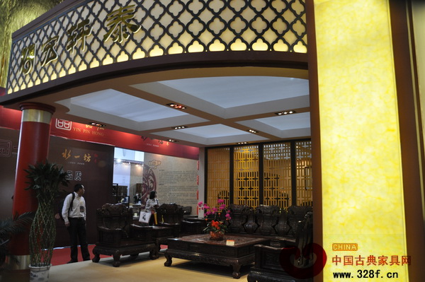 3月15日,2013中國(中山)紅木家具文化博覽會在廣東省中山市博覽中心正式開幕。本屆博覽會為期五天,展覽面積達1.5萬平方米,參加企業(yè)達149家。記者在參觀各大紅木家具企業(yè)展廳時,發(fā)現(xiàn)有一家紅木家具的展廳門面裝飾得別具一格,展廳內(nèi)部布置得精致典雅,進入展廳的人群絡(luò)繹不絕,記者經(jīng)不住好奇也走進去一探究竟。
