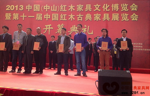 東成紅木總經(jīng)理張錫復(fù)(左三)被授予“中山市工藝美術(shù)大師”稱號