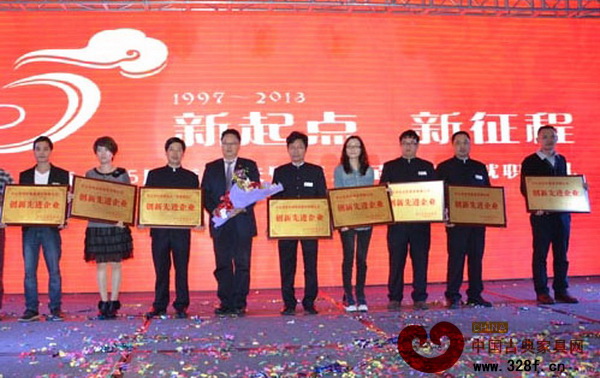東成紅木(左三)被授予“創(chuàng)新先進(jìn)單位”