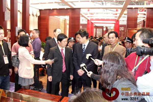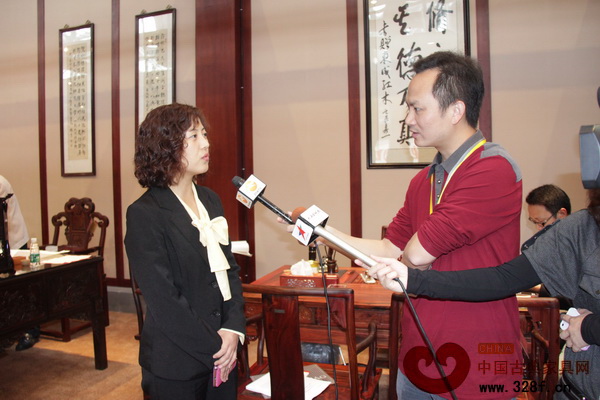 東成紅木精彩亮相,引來媒體熱播,圖為東成紅木營銷總監(jiān)饒穎女士接受媒體采訪