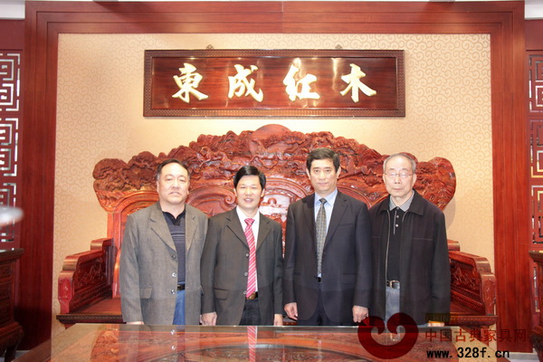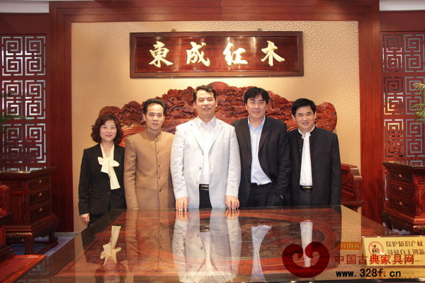 中國家具協(xié)會理事長朱長嶺(右二)一行蒞臨東成紅木參觀指導(dǎo)