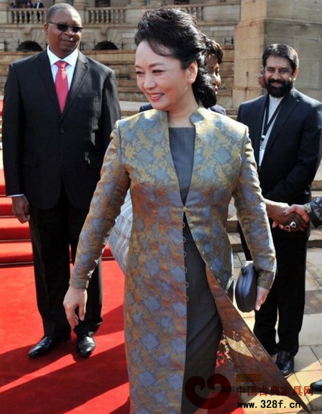 彭麗媛隨習(xí)近平抵達(dá)比勒陀利亞,一身藍(lán)色雙排扣風(fēng)衣凸顯傳統(tǒng)中國風(fēng),大氣,高貴