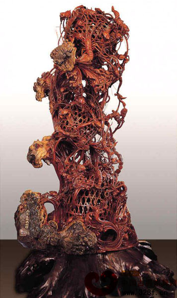 3.28米花梨木《三層龍蝦蟹簍》(辜柳希作品,2008年中國第四屆國際文化博覽會“中國工藝美術文化創(chuàng)意獎”特別金獎)