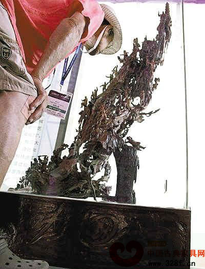 這一類的木雕藝術(shù)品如何判斷其價值?在花地灣,有木雕商人對記者說,就崖柏而言,除了雕工以外,油性大從而導(dǎo)致表面光滑油亮、根部包裹生有天然石頭(俗稱“根包石”)以及有樹瘤等,都會提高根雕成品的價值。