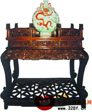 自乾隆始,家具制作風(fēng)格大變,“盛世”時(shí)期的清代社會(huì)奢靡之風(fēng)日盛,家具制造用材精良,造型厚重,形體龐大,雕飾繁縟,形成了渾厚莊重、雍容華貴的風(fēng)格。尤其是乾隆時(shí)期的宮廷家具,其材質(zhì)之優(yōu)、工藝之精、雕飾之繁,幾乎達(dá)到了無(wú)以復(fù)加的地步。