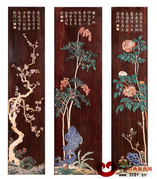 在紅木家具的各種精湛技藝中,百寶嵌又代表了清式宮廷家具的最高工藝水準(zhǔn)。百寶嵌,史稱“周制”、“周嵌”,工藝淵源已久,大致可以追溯到晚明時候,是一種用于漆器、木器等器物的裝飾工藝,以象牙、碧玉、青光石、珊瑚等百寶玉石鑲嵌于紫檀等家具之中。紫檀色調(diào)偏于玄沉,玉石、象牙等鑲嵌材料則色澤鮮亮,將它們和紫檀搭配嵌在一起,如此形成了清宮紫檀嵌百寶家具獨特的藝術(shù)美感。但在目前,紫檀嵌百寶工藝的傳承并不樂觀,甚至一度瀕于失傳,市面上能將這種絕藝予以發(fā)揚光大的相關(guān)家具作品更是少之又少。但是,在廣作的發(fā)源地廣東,卻有一家古典家具企業(yè)——中山市區(qū)氏家具有限公司傳承了這個技藝,將百寶嵌發(fā)揚光大。