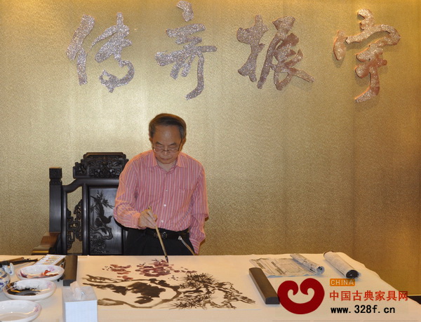 中國美術(shù)學(xué)院章利國教授在振宇紅木作畫
