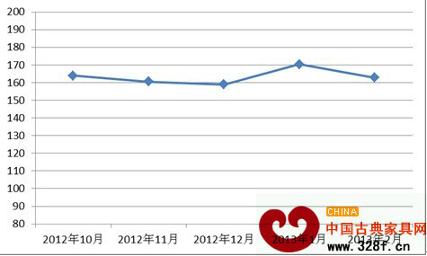 記者從中國(guó)木材與木制品流通協(xié)會(huì)紅木流通專(zhuān)業(yè)委員會(huì)獲悉,2013年2月,中國(guó)進(jìn)口紅木綜合價(jià)格指數(shù)(IHPI)為162.8(見(jiàn)圖I)。與2012年2月相比下降35.2%。比2012年1月下降了7.5%。