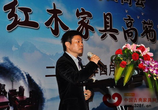 首先,蘇慶燦會長做了簡短的致辭。接下來,福建省古典工藝家具協(xié)會常務(wù)秘書長陳少飛作為代表進行發(fā)言,他指出,明清時期我國的紅木家具曾在世界上有過重大影響,仙游的紅木家具則是在傳承民間家具的基礎(chǔ)上再加以創(chuàng)新的,“它們既是實用品,又具有觀賞性,還有升值的空間,更重要的是對我們的健康有很大的關(guān)系。”陳秘書長同時還說,“我們走訪過全國的許多經(jīng)銷商,了解到紅木家具的潛力還是非常大的。紅木家具很受一些教授、企業(yè)家等人的喜歡,使用紅木家具可以說是一種潮流,引領(lǐng)著那些老板與企業(yè)家?!?