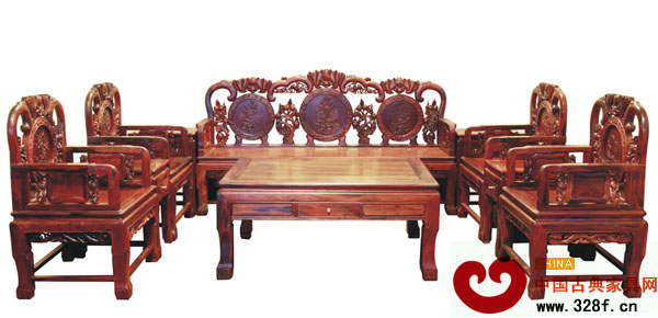 高端藝術(shù)家具:紅酸枝蝙蝠沙發(fā)十件套