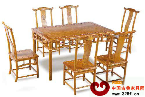 非洲花梨牡丹餐椅7件套