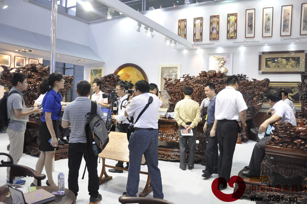 5月17日,第九屆中國(深圳)國際文化產(chǎn)業(yè)博覽交易會(下稱“深圳文博會”)在廣東深圳會展中心隆重舉行。這一天,萬眾集聚,現(xiàn)場參會人員絡繹不絕。在深圳文博會1號展館,來自全國多個省市的特色齊聚一堂,各展風采,有云南的民族民間風情、山東的藝術盛會、廣東中山的紅木工藝……在中山區(qū)域展館里,記者注意到了中山市合興(奇典居)家具有限公司展出的產(chǎn)品——《百獸圖》大型沙發(fā),發(fā)現(xiàn)許多參觀者上前了解和體驗此大型雕刻家具。