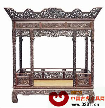 相較于明式家具,清式家具在品種與款型上追求創(chuàng)新,品類繁多,特別是清式宮廷家具最喜標(biāo)新立異。紅木家具從明代傳承至清代后,在款型上取得了很大的突破,出現(xiàn)了一些樣式新穎的家具。清式家具不似明式家具以“簡”為主,而是從家具外形和使用功能上增加了許多新元素。比如有一種拔步床,床上不僅有帽架、衣架、瓶托、燈臺(tái)、懸余架,甚至還有可以升降的痰桶架,有如一個(gè)小型的臥房。并且,清式家具在尺寸上也與明式家具有所區(qū)別,清式家具講求皇家威儀,所以多為大型重器,現(xiàn)代的清式家具也有這個(gè)特點(diǎn)。