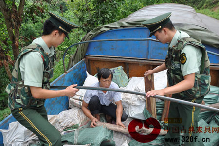 云南邊防官兵查獲珍貴走私木材