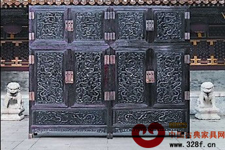 關(guān)于清乾隆紫檀雕九龍紋大四件柜