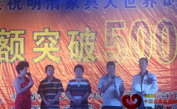 中國(guó)·武邑明清家具大世界慶祝試業(yè)月營(yíng)業(yè)額突破了5000萬(wàn)的晚會(huì)現(xiàn)場(chǎng)