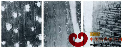 鵲腎樹(shù)木材顯微切片照片(橫、徑、弦切面,從左至右)