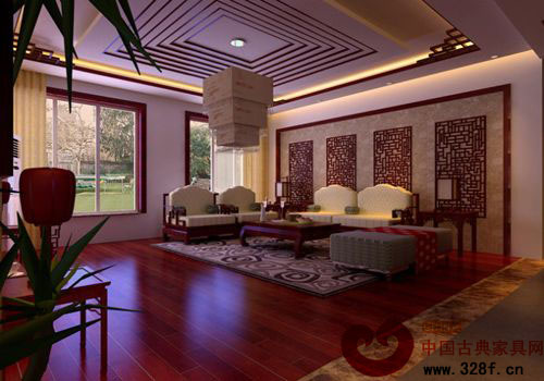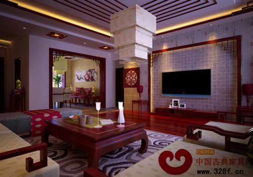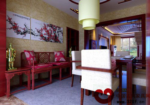 色彩以深色沉穩(wěn)為主,因中式家具色彩一般比較深,這樣整個(gè)居室色彩才能協(xié)調(diào),再配以紅色或黃色的靠墊、坐墊就可烘托居室的氛圍,這樣也可以更好的表現(xiàn)古典家具的內(nèi)涵。