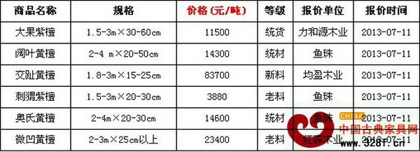 7月11日廣州魚珠木材市場(chǎng)紅木價(jià)格行情