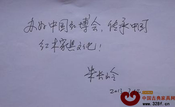 中國家具協(xié)會理事長朱長嶺為中國紅博會題詞:辦好中國紅博會,傳承中國紅木家具文化!對首屆中國紅博會的舉辦,表現(xiàn)出殷切的期望和極大的信任!