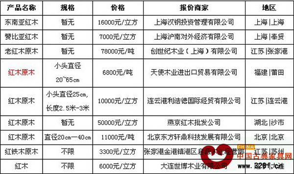 7月22日中國木材網(wǎng)紅木價(jià)格行情