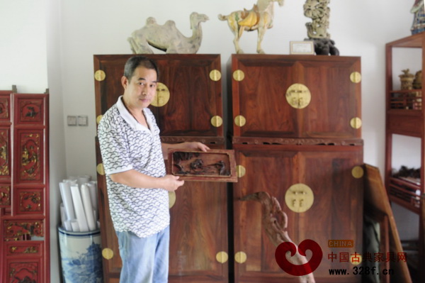 古藝福紅木董事長胡福星酷愛收藏,尤其是古木雕物件和古家具。他從二十年前就開始從廣東、上海等地收購各種古木雕物件、家具,還經(jīng)常去鄉(xiāng)下找別人舊房子上拆下不要的門窗或不用的舊家具,走到哪里看到好的東西就買,到目前已經(jīng)有六七百件藏品。現(xiàn)在想建木雕古家具博物館建,將自己所有的藏品展示給大家看,讓更多人了解古代工藝、古代的家具是如何做的,讓今人學(xué)習(xí)古人用心認(rèn)真做事的態(tài)度。