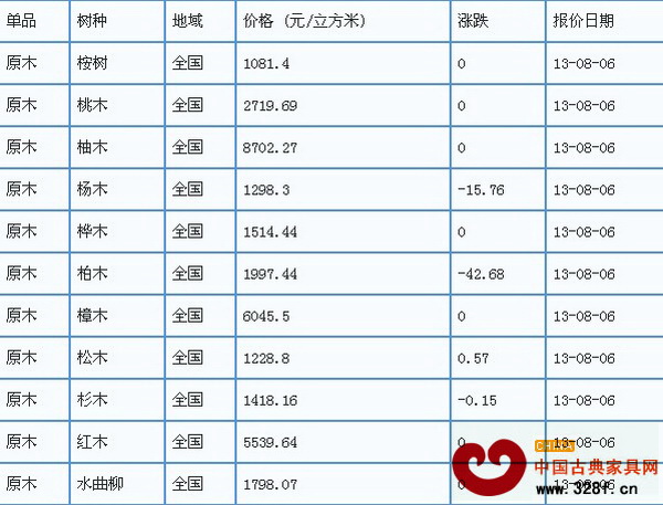 8月6日全國(guó)各地最新原木價(jià)格行情