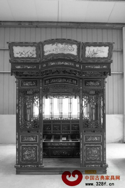 老一輩浙江寧波人家中,大都有一張架子床,雕梁畫棟中鑲嵌著古樸的吉祥圖案,如蝙蝠(寓意:福)、壽桃(長壽)、佛手果(祿)、石榴(多子)、鹿(祿)、梅雀(喜上眉梢),不同于一些歐美家具描金繪銀、花團(tuán)錦簇的設(shè)計(jì)方式,甬式家具蘊(yùn)含著中國傳統(tǒng)文化的精髓。民國時(shí)期,寧波有句順口溜叫“城外和豐紗廠,城內(nèi)紅木工場(chǎng)”,可想而知,當(dāng)時(shí)的甬式家具是多么興盛。