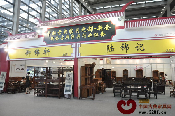 “中國古典家具之都——新會古典家具行業(yè)協(xié)會”三個展位中的一個展位外景