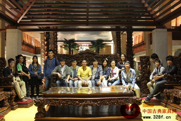 華南農(nóng)業(yè)大學(xué)家具設(shè)計(jì)系大四學(xué)生在紅古軒紅木文化體驗(yàn)館合影