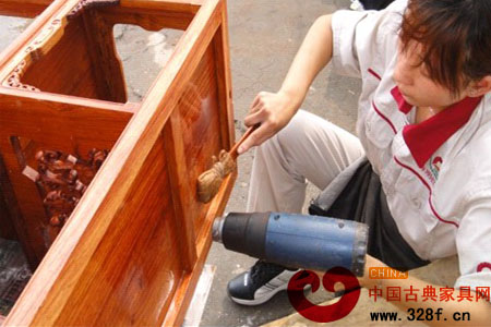 燙蠟時,應(yīng)該一邊用噴燈外焰迅速烘烤所要燙蠟的家具各零部件的表面使木材管孔膨脹,一邊用刷子蘸取熔化的蠟,并刷到要燙蠟的零部件表面,這不僅使液體狀的蠟浸入木材,封閉了管孔,還在木材表面形成了一層保護(hù)膜,大大降低了外界環(huán)境對木材的影響。另外,燙蠟應(yīng)該按著從內(nèi)向外(即先給木件里面刷蠟,再給邊抹里面及前后刷蠟,最后給各零件的外層表面刷拉),從上向下的順序。