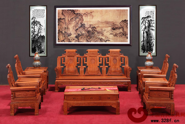 其一、繁瑣。與簡練樸素、靜穆大方相反,有的紅木家具重復(fù)使用木件,使本來空靈剔透的造型變得臃腫起來。有的紅木家具雕花也是無章法地亂堆砌,使人沒有欣賞的趣味。