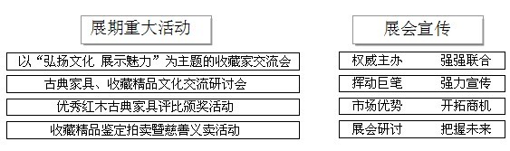 由濟(jì)南市人民政府、中國(guó)國(guó)際貿(mào)易促進(jìn)委員會(huì)山東省委員會(huì)、山東省輕工業(yè)協(xié)會(huì)、山東省國(guó)際經(jīng)濟(jì)貿(mào)易聯(lián)合會(huì)、山東省收藏家協(xié)會(huì)、濟(jì)南世博展覽策劃有限公司等單位聯(lián)合舉辦的“山東紅木古典家具及收藏精品展覽會(huì)”一年兩屆,每年春秋兩次舉行,是全國(guó)紅木家具行業(yè)的重要經(jīng)濟(jì)貿(mào)易活動(dòng)。展會(huì)從2008年首屆開(kāi)始以“弘揚(yáng)文化 展示魅力”為主題。歷經(jīng)六年的發(fā)展,展會(huì)規(guī)模達(dá)到20000平米,參展企業(yè)達(dá)2000多家,觀眾達(dá)到100000人次,已成為成交額過(guò)億的知名展覽會(huì),展會(huì)規(guī)模及效果得到了廣大展商的一致好評(píng)和認(rèn)可。展會(huì)已被權(quán)威部門(mén)和媒體評(píng)為北方最大的紅木古典家具及收藏精品展覽會(huì)之一。