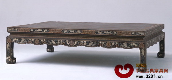 黑漆嵌玉描金百壽字炕桌