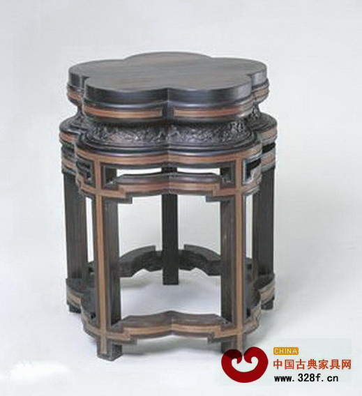 [摘要]清紫檀嵌竹絲梅花式凳造型優(yōu)美,小巧精制,在做工和色調(diào)的處理上更是恰到好處,為清中期蘇式作品。