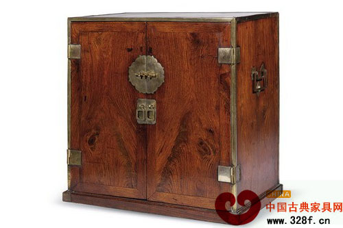 [摘要]此箱精選黃花梨制成,箱門一木對開,攢框鑲板,飾以銅質(zhì)花邊形和長方形委角面葉,鈕頭、吊牌保存完好。箱子兩側(cè)飾有方形把手。內(nèi)置十四個(gè)抽屜及一個(gè)一木剖的小柜,實(shí)用性強(qiáng)。