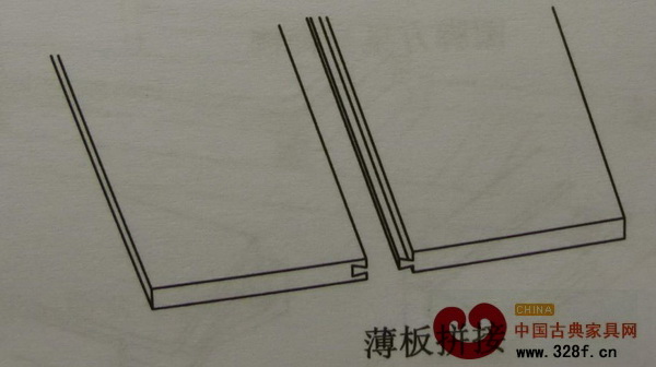 龍鳳榫、穿帶是依靠燕尾凹凸結(jié)構(gòu)對家具木材進(jìn)行對接和平面穩(wěn)定的一種榫卯結(jié)構(gòu),它在明清家具的制作中得到普遍應(yīng)用。它常用于案面芯板、柜門、床面、板子頭部等需要拼接或加固的部位,龍鳳榫拼接需用膠粘接,而穿帶不能用膠,因為穿帶還起到滑動導(dǎo)向的作用。穿帶的使用一般距離兩端在15公分左右,穿帶的間距在35-40厘米之間。這種榫卯結(jié)構(gòu)衍生的變種也非常多,用途廣泛,但完美的功能不是衍生變種結(jié)構(gòu)能代替的。