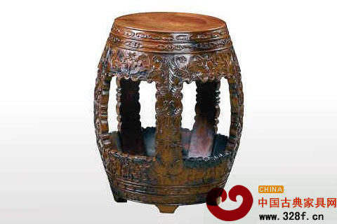 坐墩在古時(shí)候又稱為“繡墩”、“鼓凳”。這兩個(gè)名字分別道明了坐墩的使用和外觀特點(diǎn)。這種家具在古代頗受女子青睞,在坐墩表面覆蓋一方自己所繡的織物,又名“繡墩”。而“鼓凳”則得名于坐墩的外觀頗似鼓形,宋代的坐墩以藤為材料,圓形的墩面蒙上一層皮革,并用鼓釘釘緊。這一款造型后來(lái)成為坐墩的“經(jīng)典款”,后來(lái)用陶瓷、石材制作坐墩時(shí),也會(huì)保留鼓凳的外形和鼓釘?shù)难b飾。