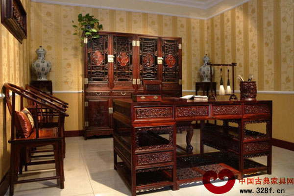 傳統(tǒng)家具中最具實用性和觀賞性的首推書房家具。書房是文人活動的主要場所。讀書、寫字、撫琴、飲茶、下棋、會友、賞玩古董,與之相應(yīng)的有書桌、畫桌、琴桌、書架、博古架、香幾等,即便是椅子也有著非常文雅的名稱:如筆桿椅、書卷椅、官帽椅等。書房家具因有了文人的參與,使家具的文化氣息更加深厚,其比例和諧適宜,造型古樸文雅,紋飾簡潔流暢,制作精巧絕倫,家具的體量一般都不大,用在用料和做工上更為講究。其簡潔文雅的特點跟現(xiàn)代居室的簡練,流暢的環(huán)境十分的融合,又能提供極佳的使用功能。