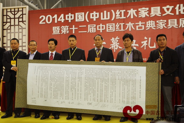 [摘要]在3月14日晚的“紅博城之夜”2014中國(中山)紅木家具文化博覽會歡迎晚宴暨中山市紅木家具行業(yè)協(xié)會周年慶典上,宏達一品居光榮地成為《中山市紅木家具行業(yè)誠信公約》的發(fā)起單位。