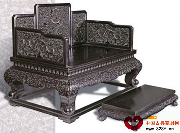 明清以降,中國(guó)的御用家具,因其充滿了中華民族獨(dú)特的皇權(quán)天授、天人合一的宮廷風(fēng)格和完美主義的審美情趣,而在世界收藏界享有盛譽(yù)。一個(gè)著名的說(shuō)法是:把西洋家具放在中式的建筑中會(huì)顯得很不般配;但如果把中國(guó)的明清家具擺在西式風(fēng)格的居室里,卻顯得異常地和諧。與明式家具簡(jiǎn)明、古樸、清雅、文秀的“書卷氣”不同的是,清式家具以用料寬綽,體態(tài)豐碩和富有變化的精湛工藝及豪華、富麗、繁縟的富貴氣派而著稱于世。此次將上拍的這件紫檀龍紋寶座就是一件精美之作。